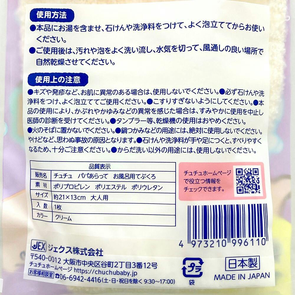 ●本品にお湯を含ませ、石けんや洗浄料をつけて、よく泡立ててからお使いください ●ご使用後は、汚れや泡をよく洗い流し、水気を切って、風通しの良い場所で 自然乾燥させてください