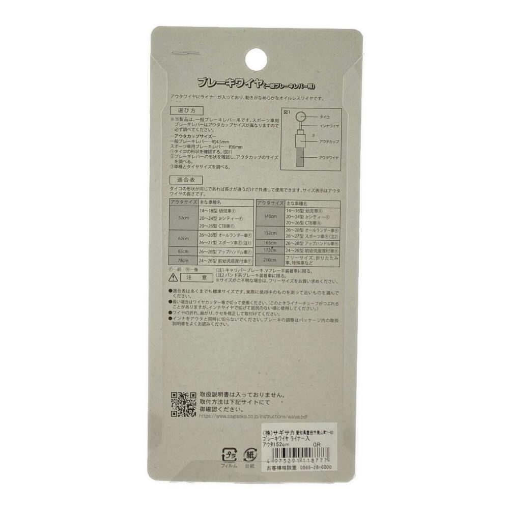 ブレーキワイヤー 152cm ライナー入り 11877