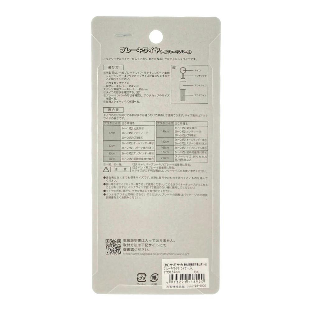 ブレーキワイヤー 152cm ライナー入り ブラック 11892