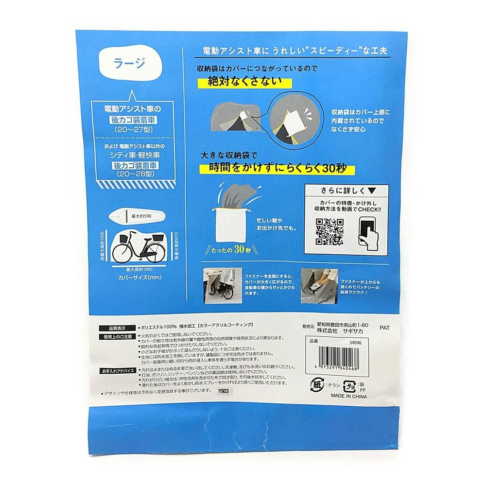 電動アシスト車用 スピーディーサイクルカバー ラージ シルバー 34046