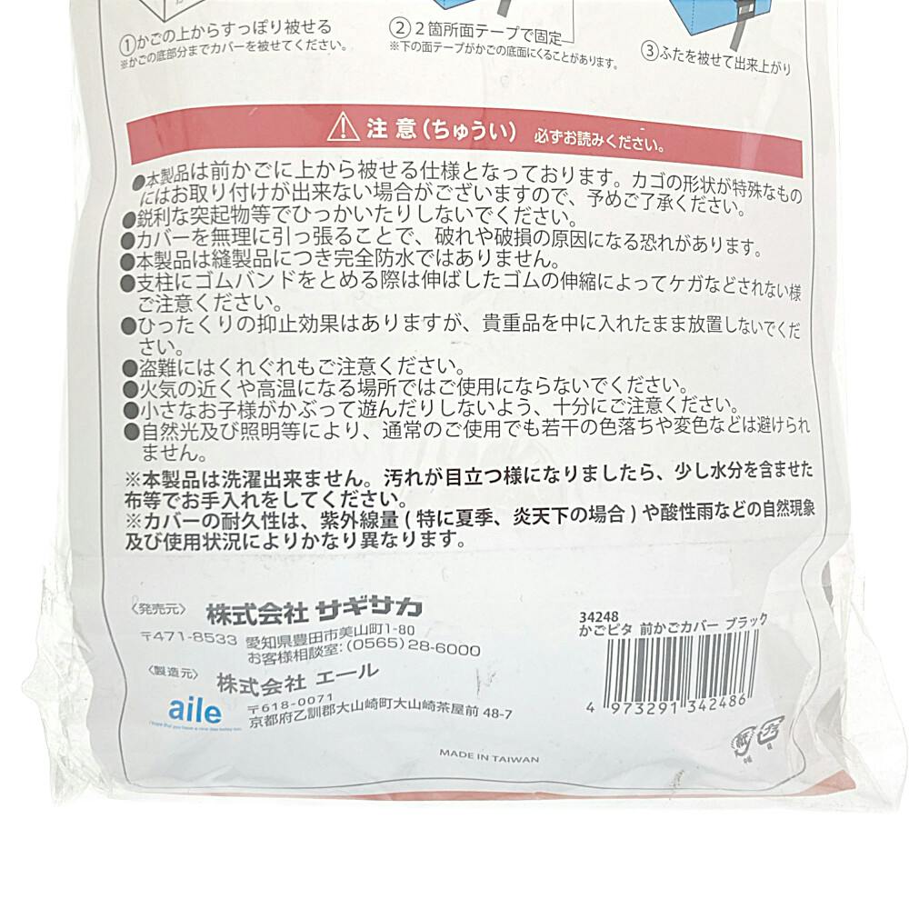 ●本製品は前かごに上から被せる仕様となっております。カゴの形状が特殊なものにはお取り付けが出来ない場合がございますので、予めご了承ください。●鋭利な突起物等でひっかいたりしないでください。等