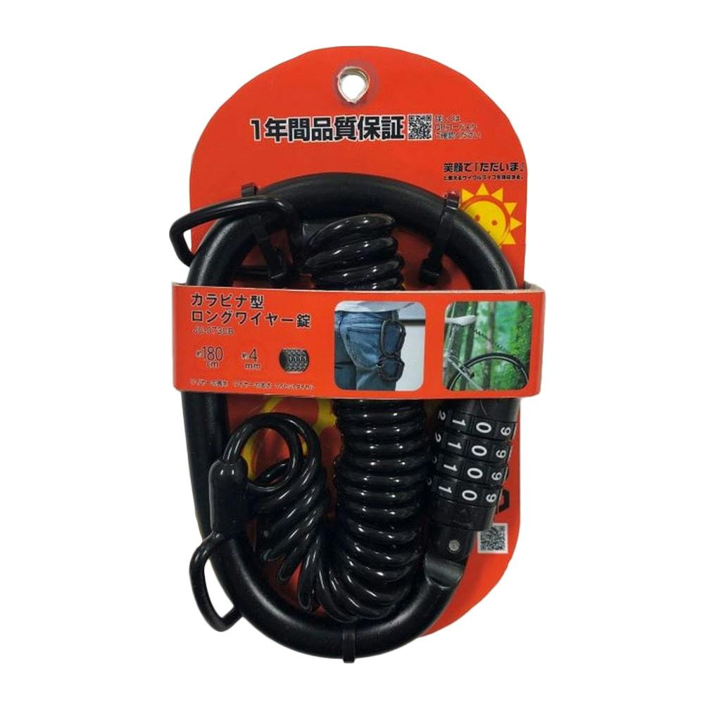 カラビナ&コイル巻ロングワイヤーロック ブラック 43770 4mmx180cm