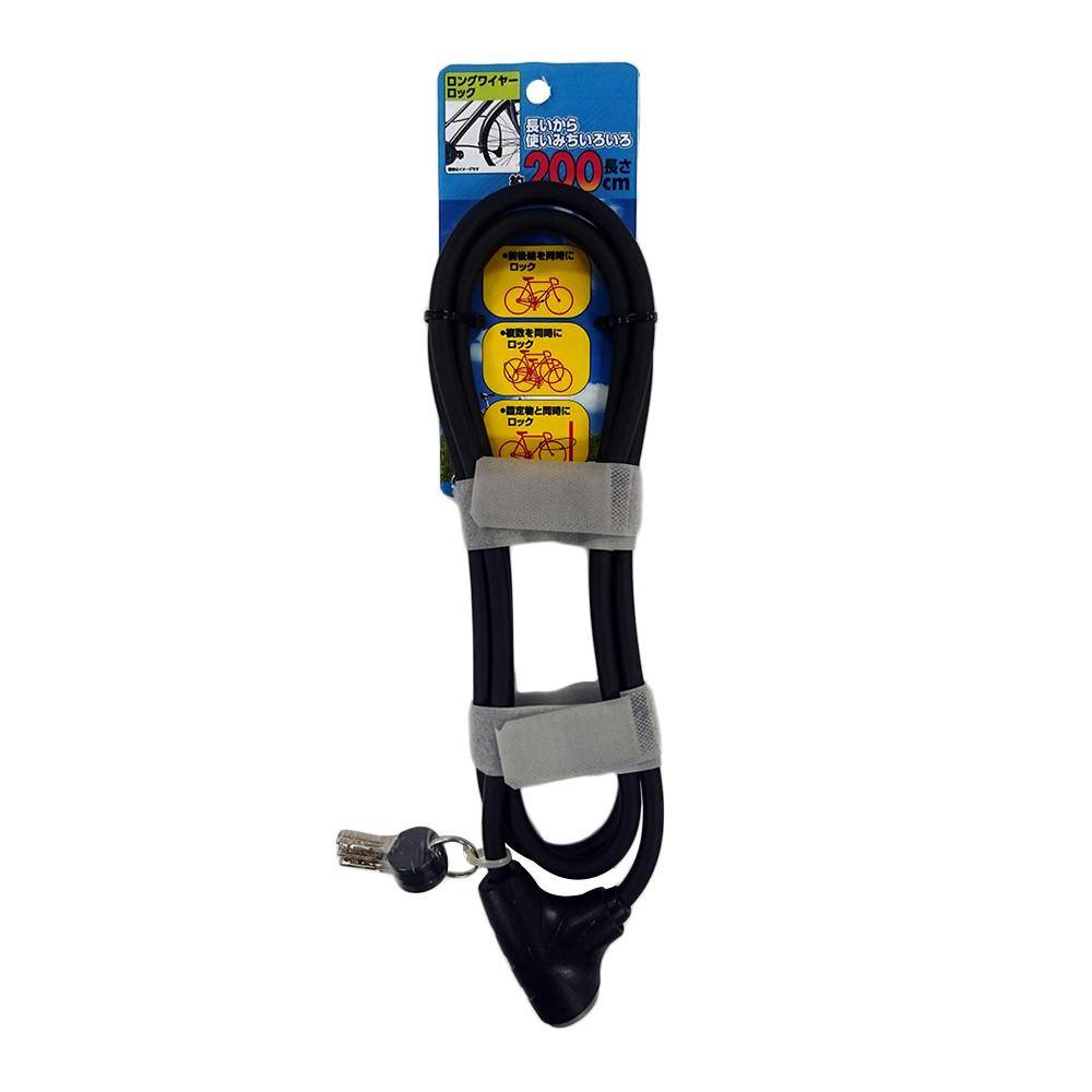 ●前後輪を同時にロック・複数を同時にロック・固定物と同時にロック●200cmのストレートワイヤーなので長くて使いみちがいろいろ。●モノコック(一体型)ボディで端子が差込みやすく施錠しやすい。●収納するときに必要なバンド付き。(2本)