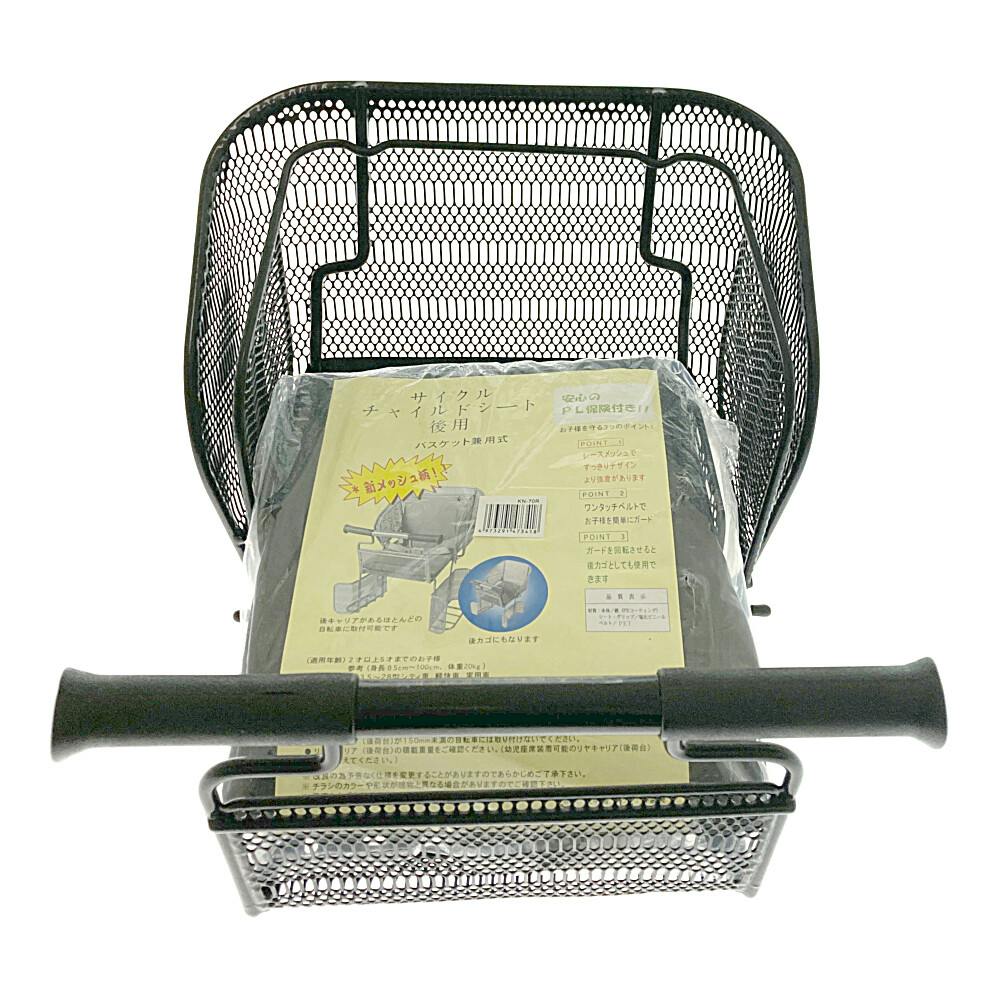 ●後用●バスケット兼用式●新メッシュ柄!●安心のPL保険付き!●お子様を守る3つのポイント!1、レースメッシュですっきりデザイン。より強度があります2、ワンタッチベルトでお子様を簡単にガード3、ガードを回転させると後カゴとしても使用できます
