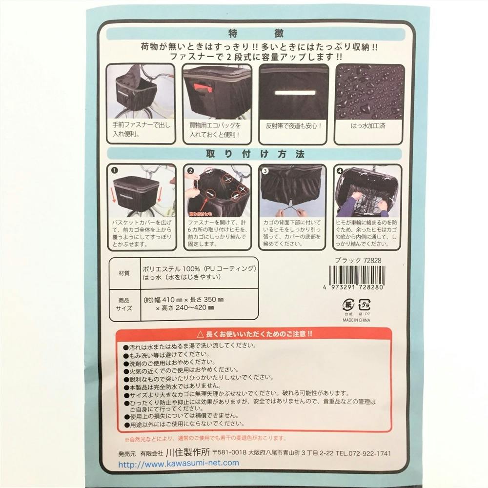 電動アシスト車用角型前カゴカバー 2段式 ブラック 72828