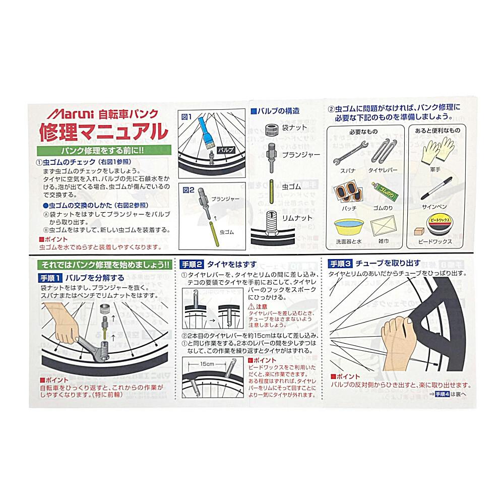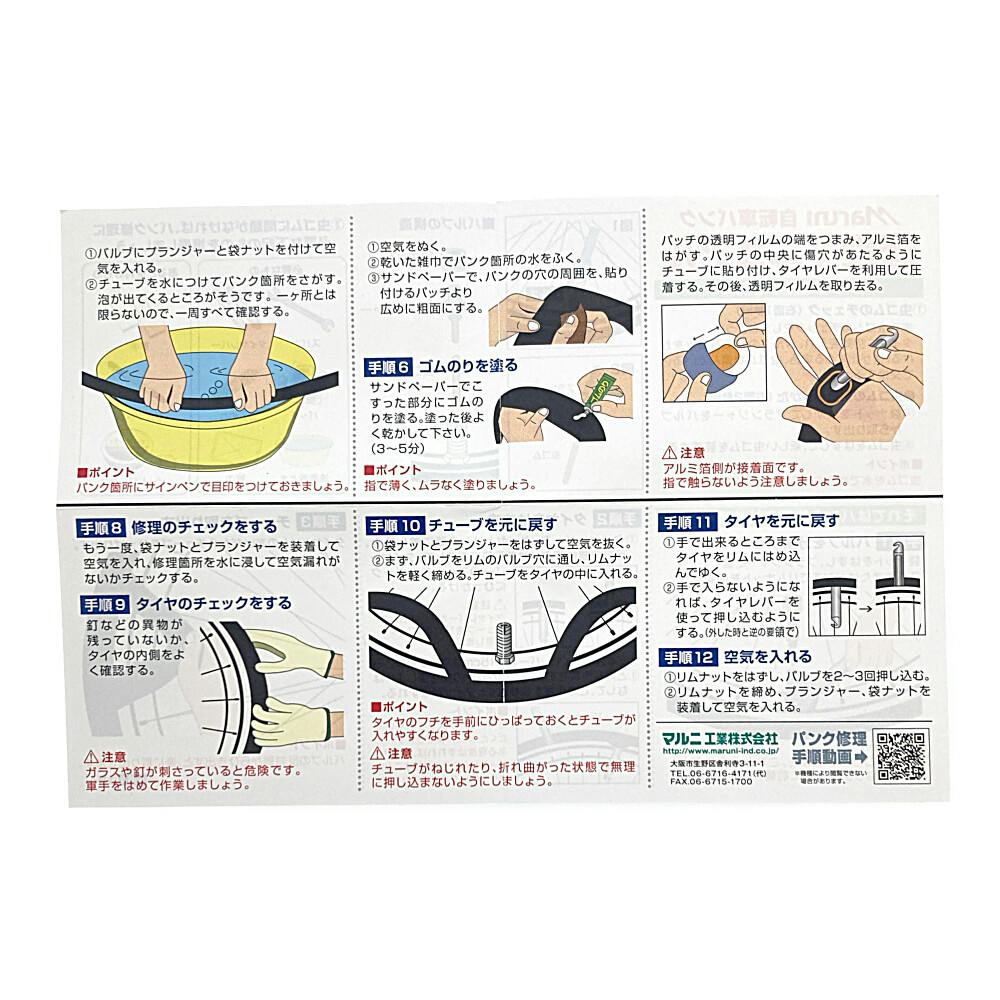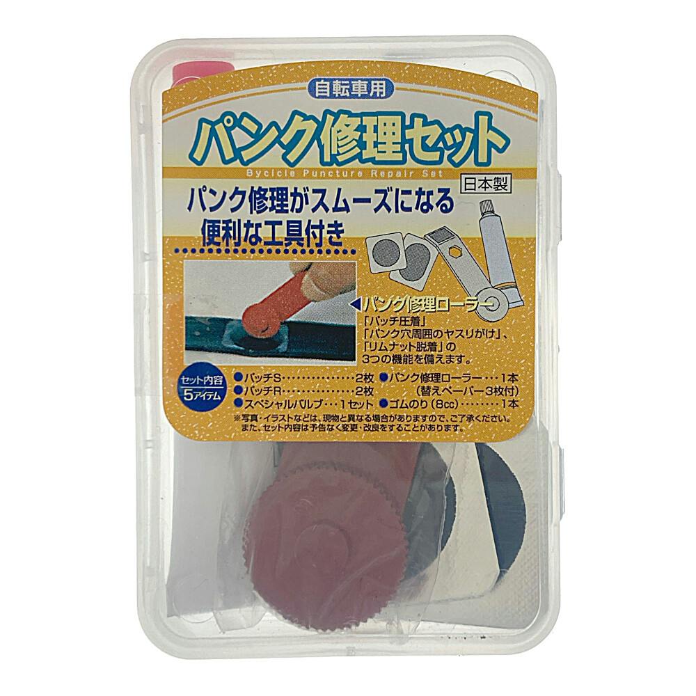 パッチS:2枚、パッチR:2枚、スペシャルバルブ:1セット、パンク修理ローラー:1本 (替えペーパー3枚付)、ゴムのり8cc:1本