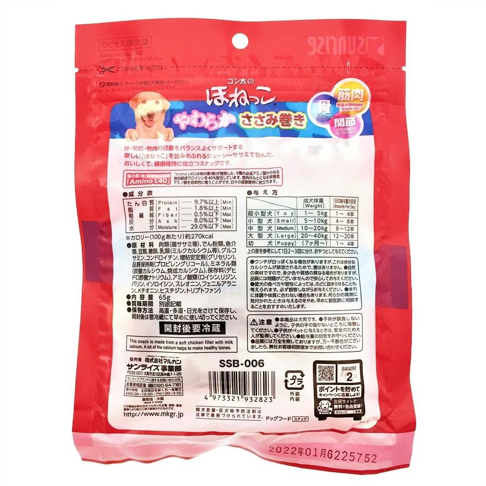 ゴン太のほねっこ やわらかささみ巻き Sサイズ 65g