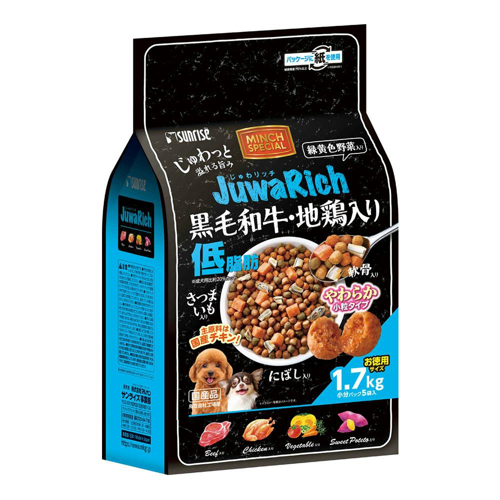 マルカン サンライズ じゅわリッチ 黒毛和牛・地鶏入り 低脂肪 やわらか小粒 小分パック5袋入 1.7kg