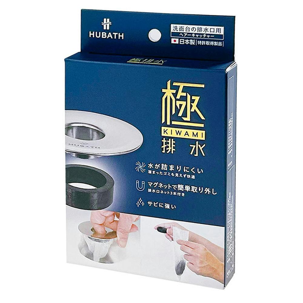 「髪が詰まって水があふれてくる」「掃除が面倒」「頻繁なゴミ捨てが面倒」という洗面台排水口掃除の3つの問題を解決します。マグネットで排水口ネットをとりつけることで「今までにない排水性」を実現しました。