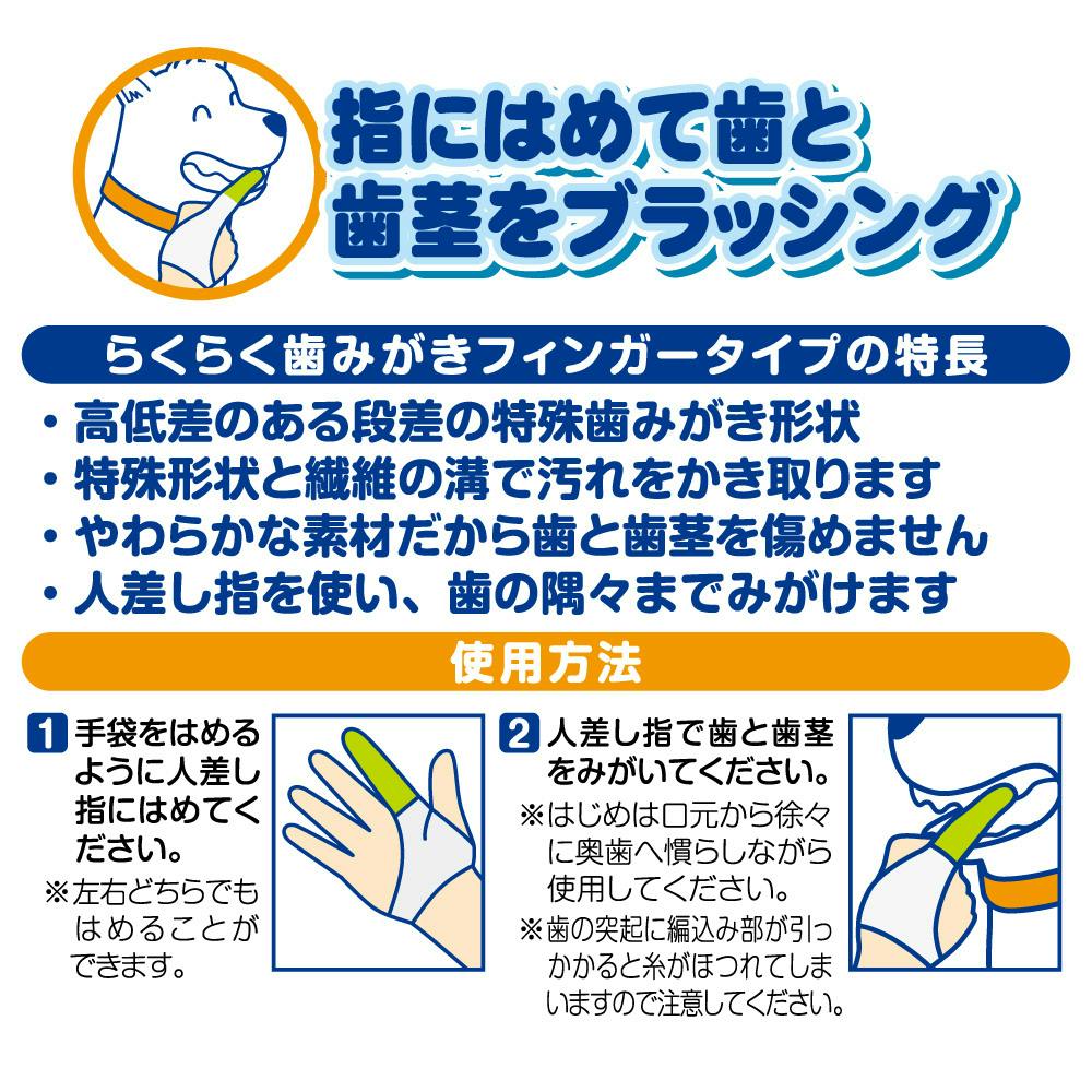 手袋をはめるように人差し指にはめて、人差し指で歯と奥歯をやさしくマッサージするように磨いてください。