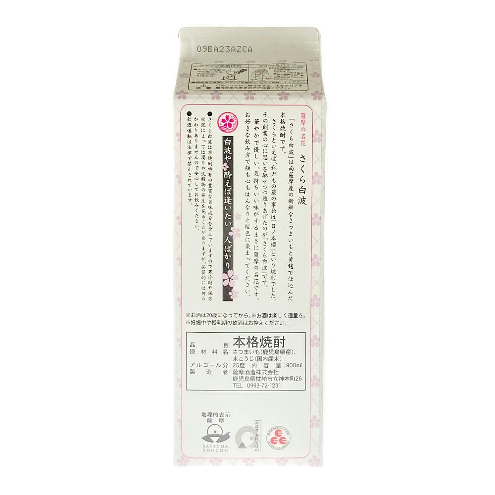 (鹿児島)薩摩酒造 さくら白波 芋焼酎 25度 スリムパック 900ml【別送品】