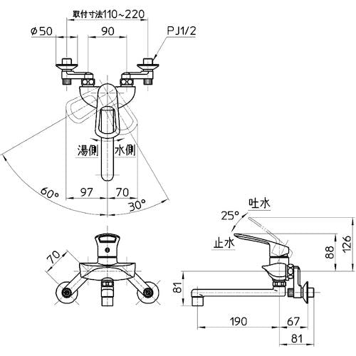 【CAINZ-DASH】SANEI シングル混合栓 キッチン用 オールメッキ 寒冷地用 パイプ190mm K1712E2K-13【別送品】