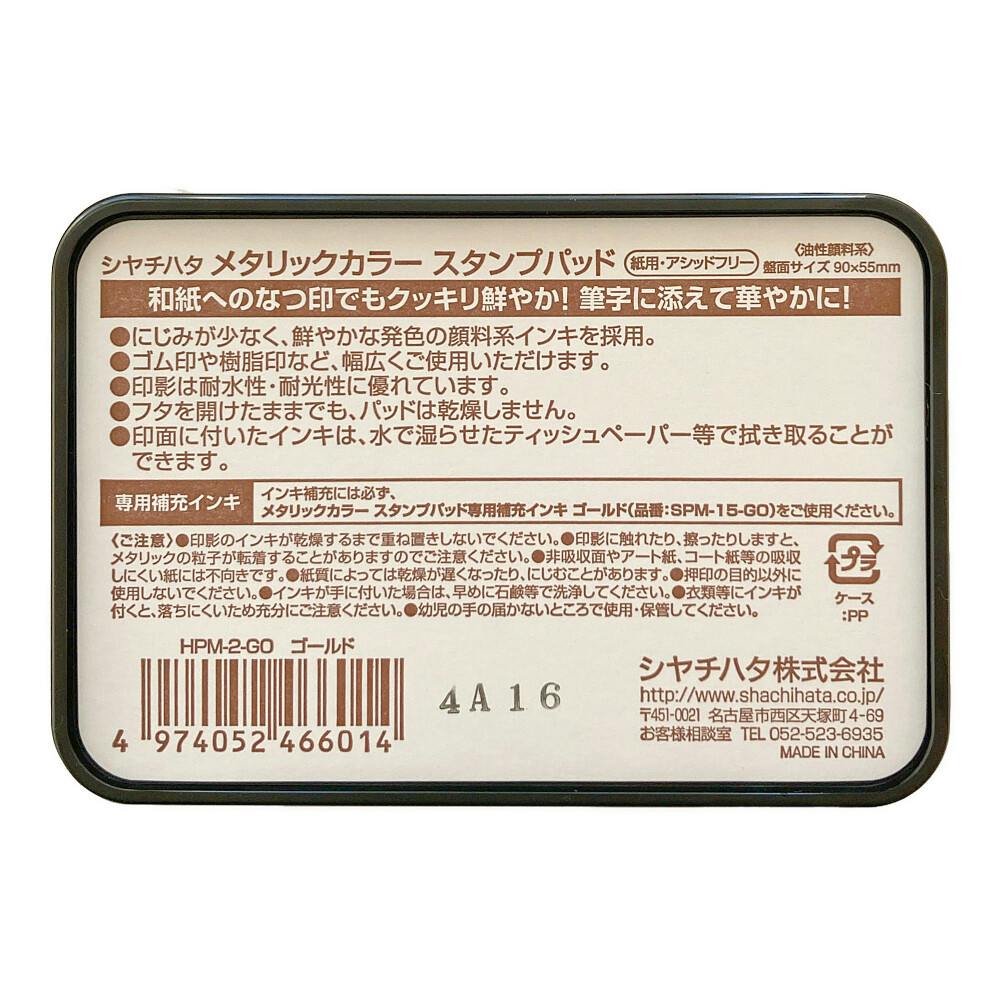 インキ補充には必ず、専用補充インキ メタリックカラースタンプパッド専用インキ ゴールド(品番:SPM-15-GO)をご使用ください