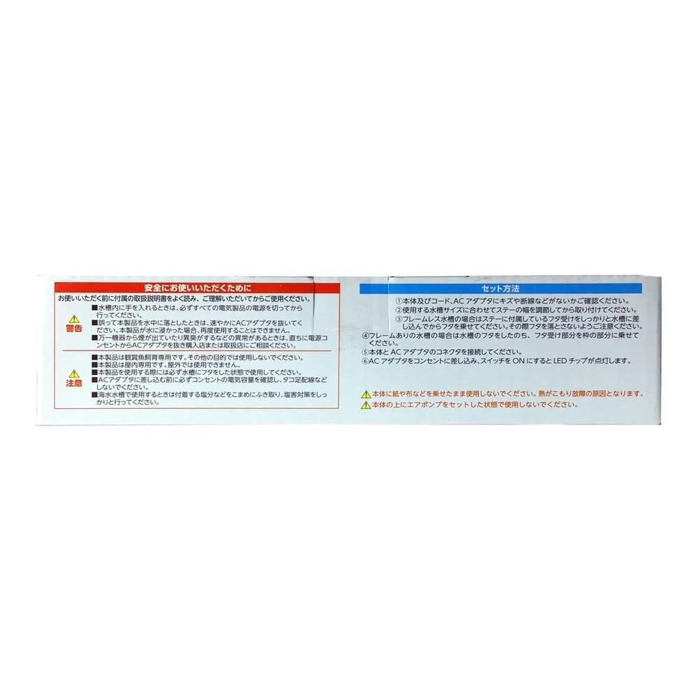 ●本体に紙や布などを乗せたまま使用しないこと●本体の上にエアポンプをセットし使用しないこと●水槽内に手を入れる時は全ての電源を外すこと