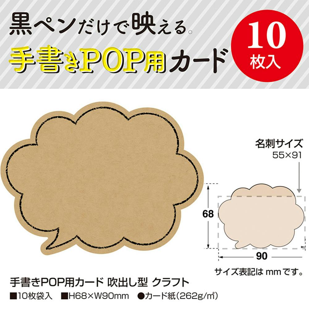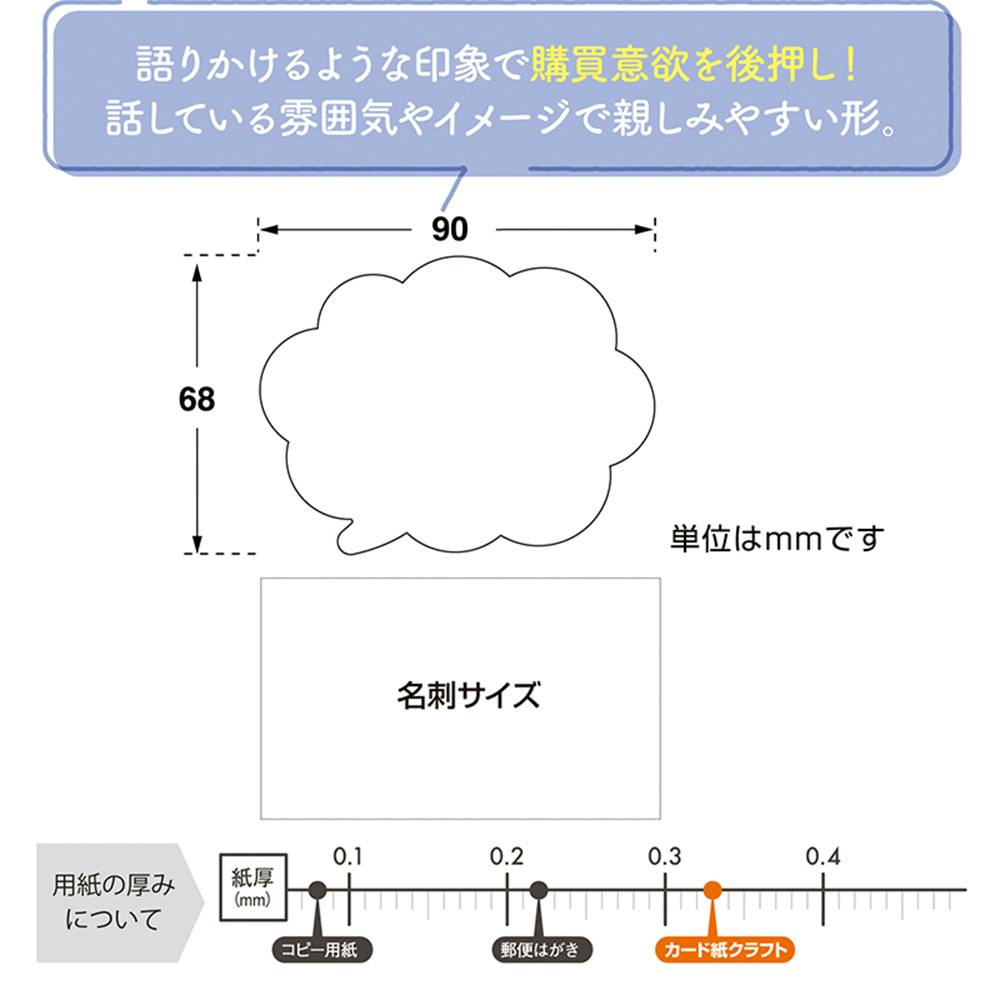 黒ペンで書くだけでナチュラル感が演出できるクラフト素材のカードです。吹き出しの形は誰かが話しているような印象を与え、親しみやすさがあります。自分で切るのは面倒な形だが好まれています。