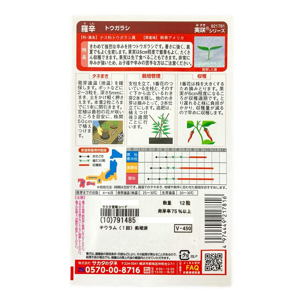 ●きわめて強烈な辛みを持つトウガラシです ●暑さに強く、真夏でもよく生育します ●果実は6cm程度で着果もよく、たくさん収穫できます ●果実は生で食べることもできます ●非常に辛みが強いため、お子様や辛みの苦手な方はご注意ください