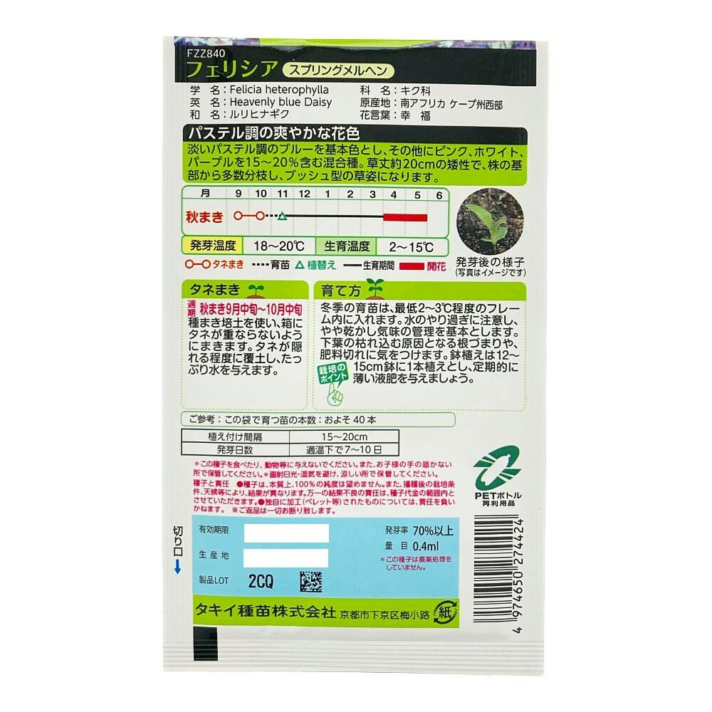 ●淡いパステル調のブルーを基本色とし、その他にピンク、ホワイト、パープルを15~20%含む混合種 ●草丈約20cmの矮性で、株の基部から多数分枝し、ブッシュ型の草姿になります