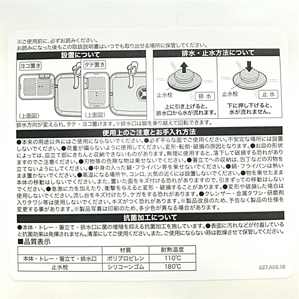 ●トレーや部品を分解できてお手入れ簡単・清潔●縦置き・横置き自由自在の可動式排水口●水か流れるトレー付●排水・止水切替栓付●箸立て付●Ag+抗菌(本体・トレー・箸立て・排水口)