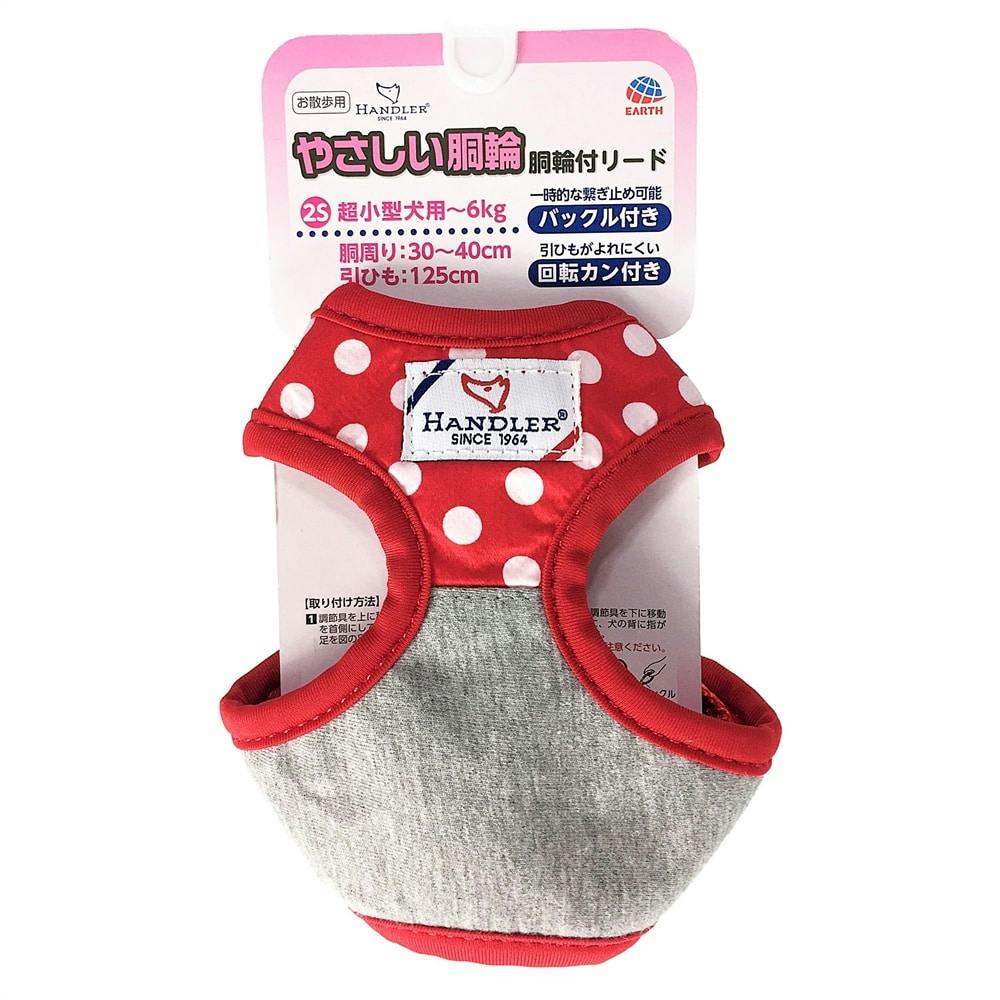 HDポルカドット 胴輪付リード2S 赤