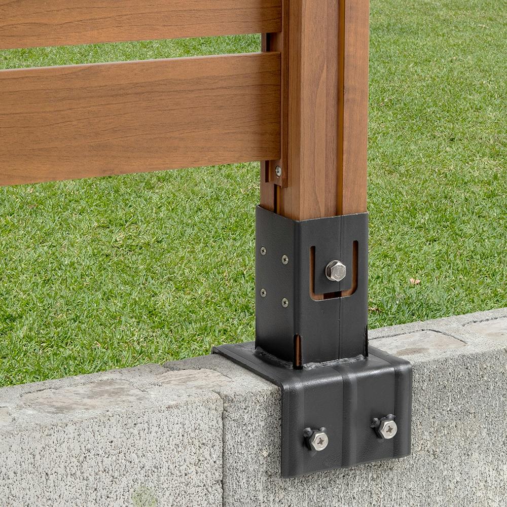 60角柱専用の固定金具。サビに強いステンレスボルトを採用。ブロックの上に柱を取り付ける際に使用してください。美WOODフェンスやホームEX アルミボーダーフェンスにおすすめです。