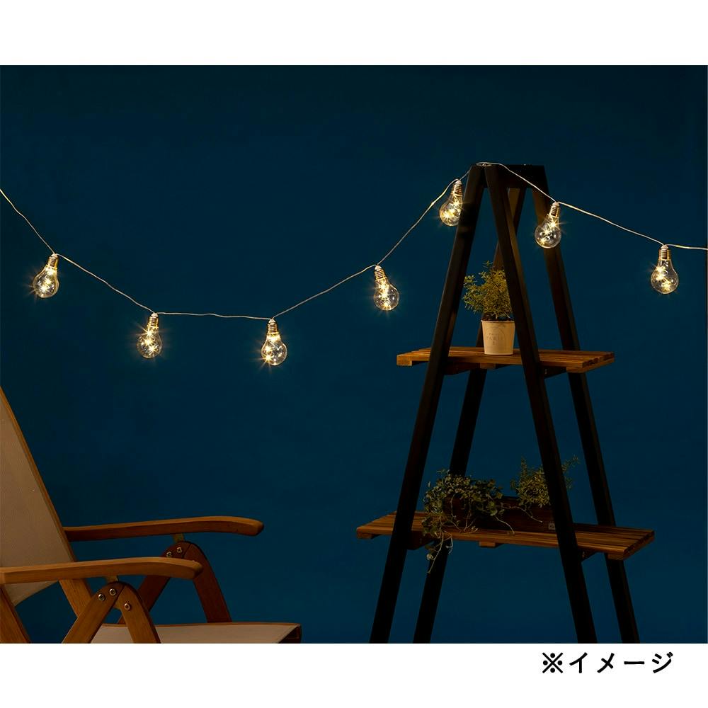 ソーラーパネルを日当たりのいい場所に設置してしっかり充電すれば、ライト本体は日陰にも設置可能です。電球型のかわいいデコレーションライト。つり下げ式なので、屋根やベランダへの飾り付けがおすすめ。視線より上に飾りつけることで、華やかな雰囲気になります。