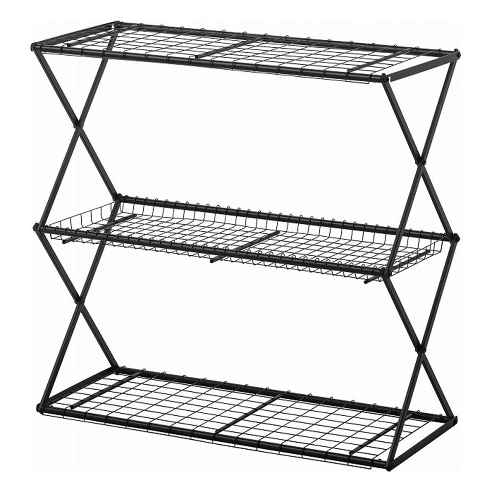 ●本体の折りたたみサイズ:約幅86cm×奥行53.5cm×高さ6cm●棚板(上段・下段の外寸):約幅79cm×奥行36cm、棚板(中段の内寸):約幅79cm×奥行29.5cm
