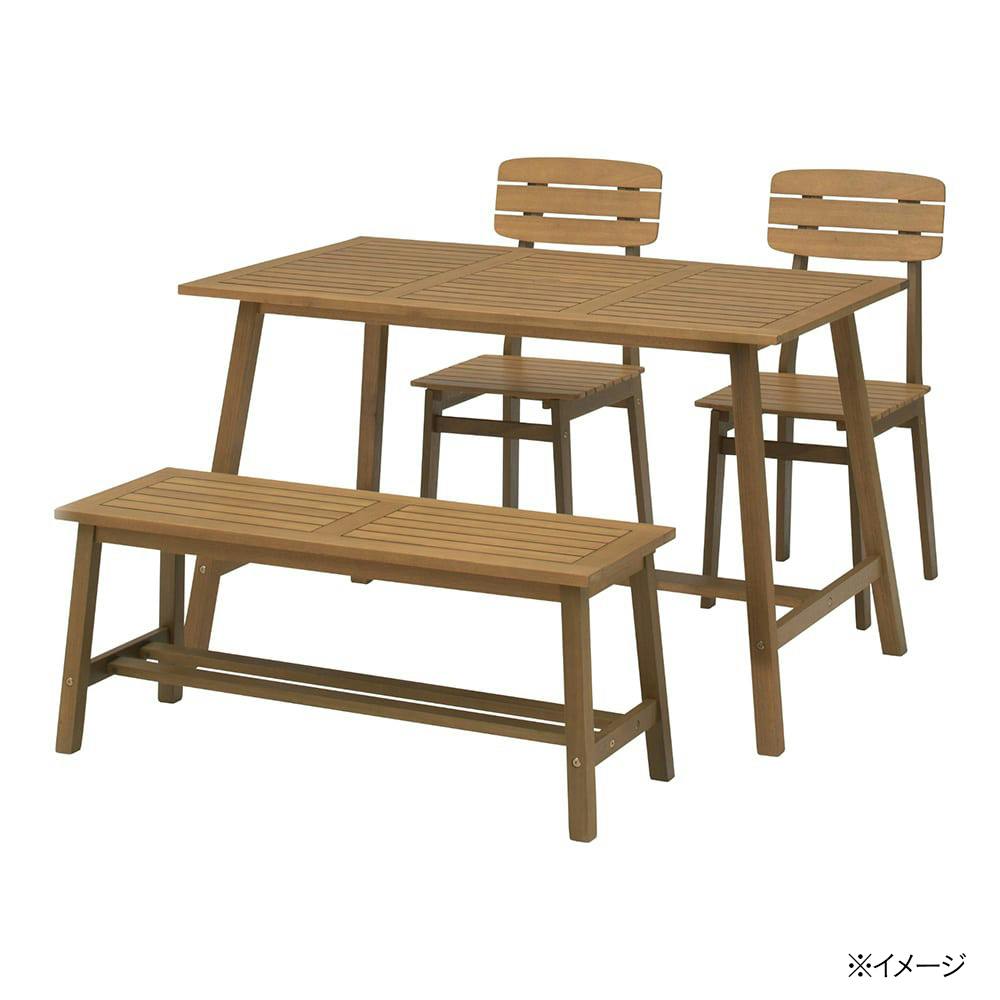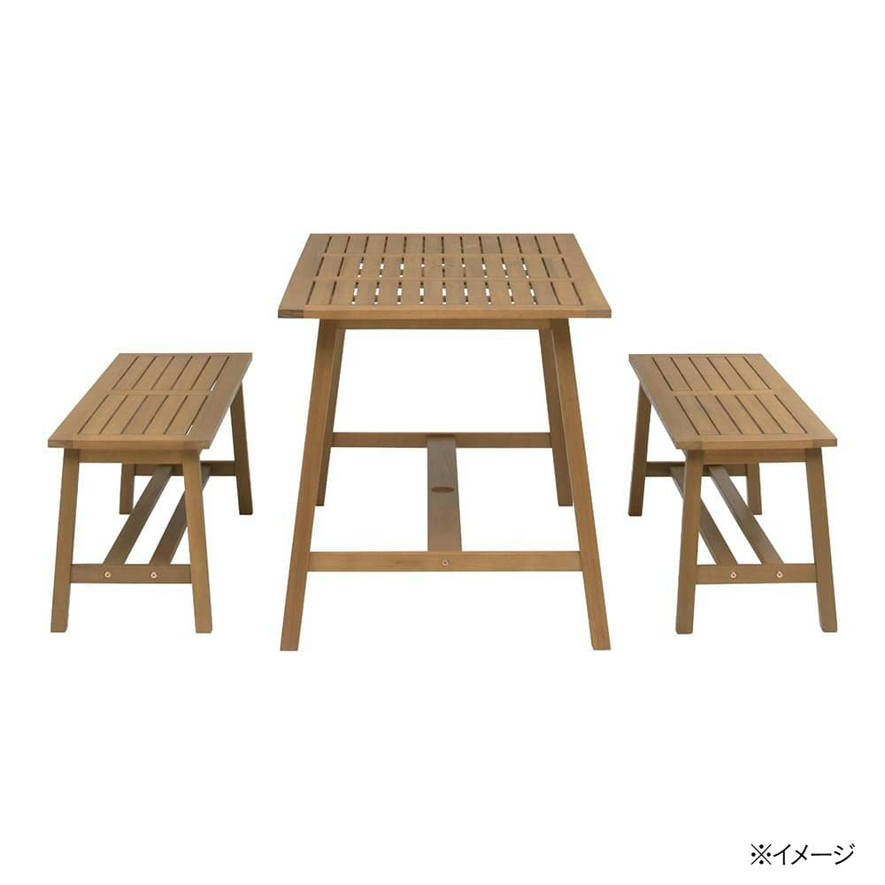 天然木(ユーカリ)を使用したシンプルで使いやすいガーデンファニチャー。マリーウッドダイニングテーブルにすっぽり収まるサイズです。ベンチの下は靴などがおける簡易収納に使えます。