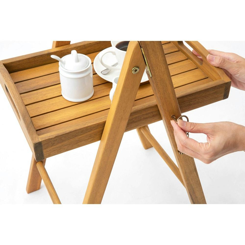 折りたたみができて、持ち運びが簡単なキャリーシリーズ。スタンドごと持ち運ぶことも、トレイを取り外して使用することも可能です。アカシアを使用しています。