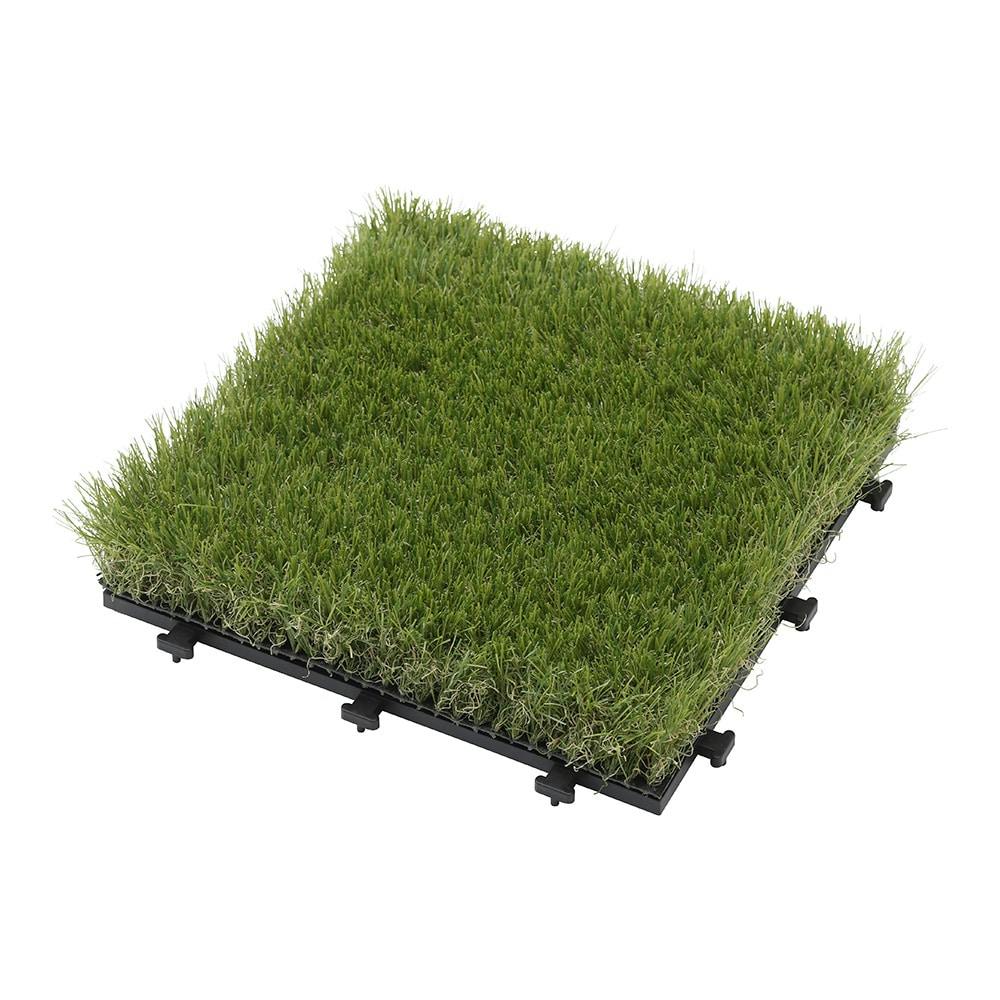ふかっとやわらかな人工芝タイプのガーデンデッキ。並べて敷くだけで、殺風景なベランダやバルコニーが素敵な空間に。清潔で安心して使える抗菌加工。工具などは使わずに、だれでも簡単にジョイントできます。1枚あたりのサイズは約30cm×30cm。