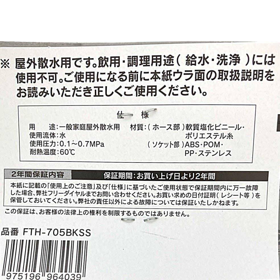 ●ホース部/軟質塩化ビニール、ポリエステル糸●ソケット部/ABS、POM、PP、ステンレス