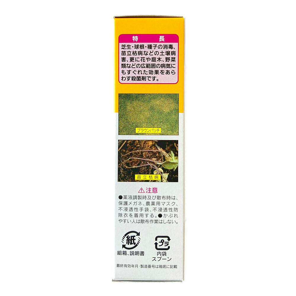 かび類(糸状菌)によって起こる広範囲の病気に優れた効果を発揮する保護殺菌剤、花や庭木、野菜類などの広範囲の病気にも優れた効果を発揮し、植物への薬害が少ない殺菌剤です。