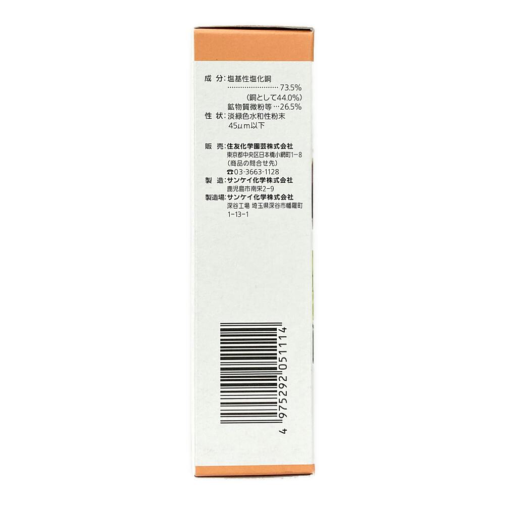 天然成分の塩基性塩化銅を主成分とし、各種病原菌に対して予防効果を発揮する代表的な保護殺菌剤、斑点細菌病など細菌によって起こる病気はもちろんのこと、かび(糸状菌)によって起こるべと病、もち病などの病気に予防効果を発揮します。