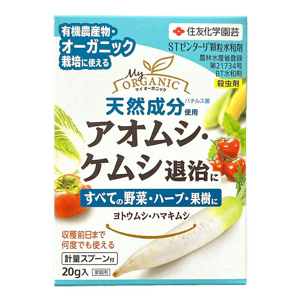 自然界にいる天然微生物(B.t.菌)が作る有効成分が、アオムシ、ヨトウムシ、ハマキムシなどチョウ目害虫に効果をあらわします。