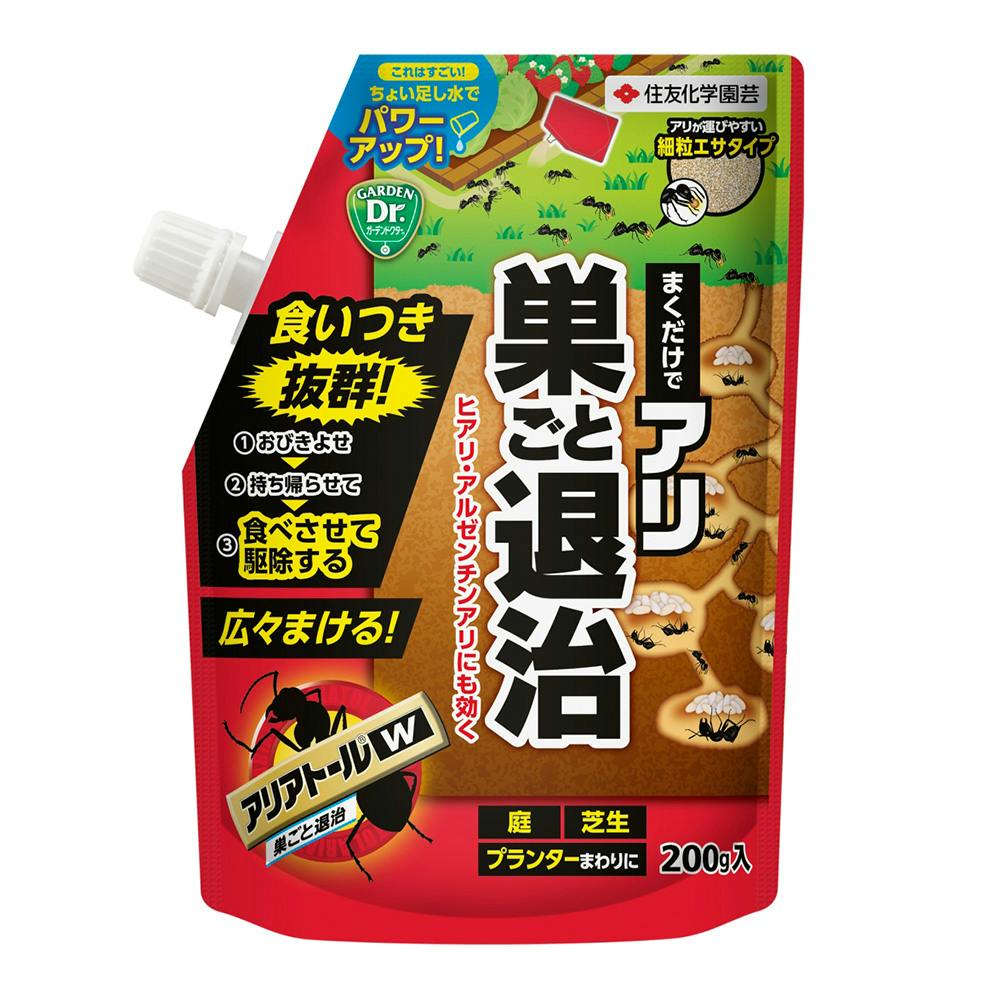 巣に持ち帰らせて、食べさせて、アリを巣ごと退治する殺虫剤です。巣がどこか分からない場合でも、広々まいて効果的にアリを退治!