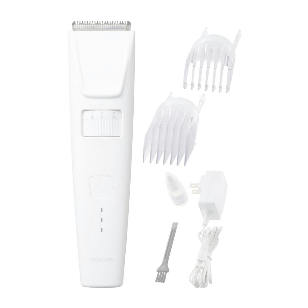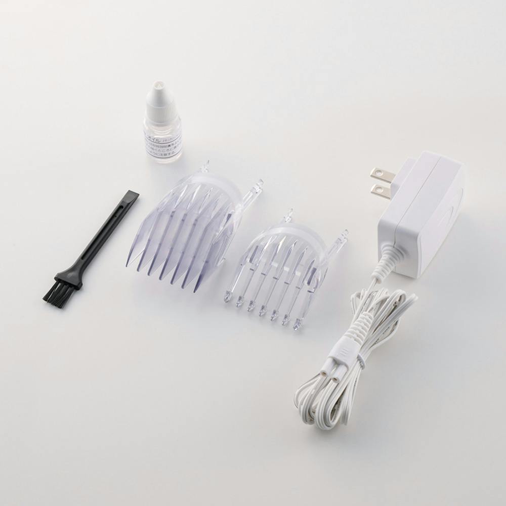 コーム2種(刈り高さ3mm-11mm/17mm-25mm)、専用電源アダプター、掃除用ブラシ、TESCOMオイル