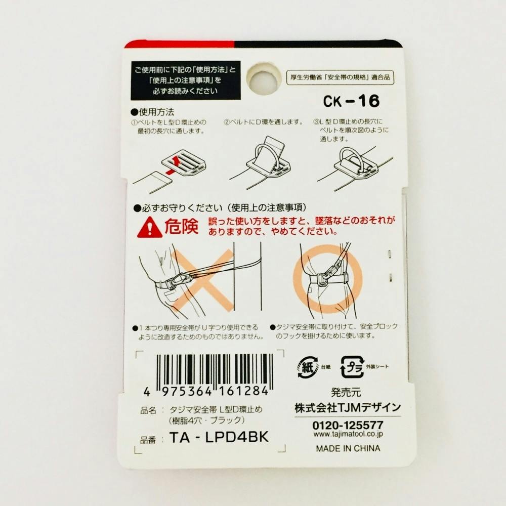 タジマ TAJIMA TJMデザイン 安全帯 L型D環止め 樹脂4穴 ブラック TA-LPD4BK