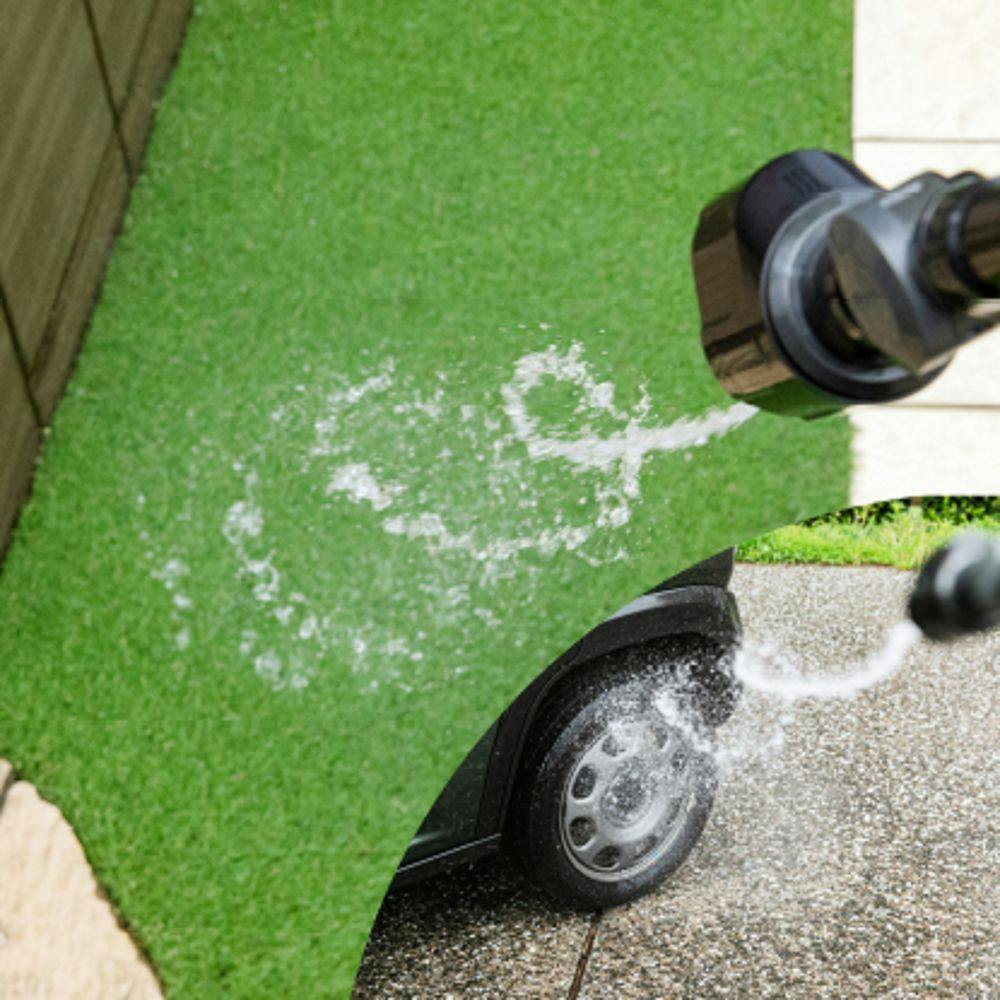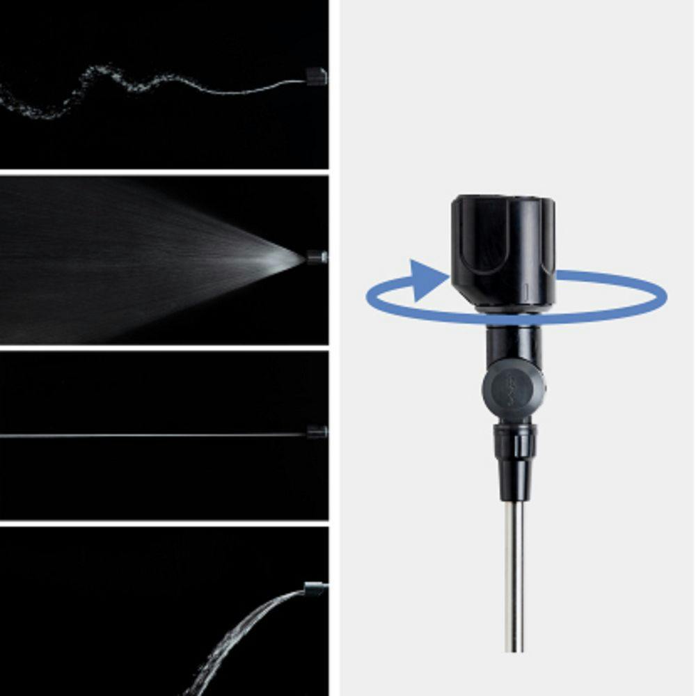 清掃に適した4水形(サイクロン・ジェット・フラット・整流)。サイクロン水流で簡単清掃。勢い重視から範囲重視まで。●ノズル先端角度を180°調節できます。●手元で流量調整が可能です。