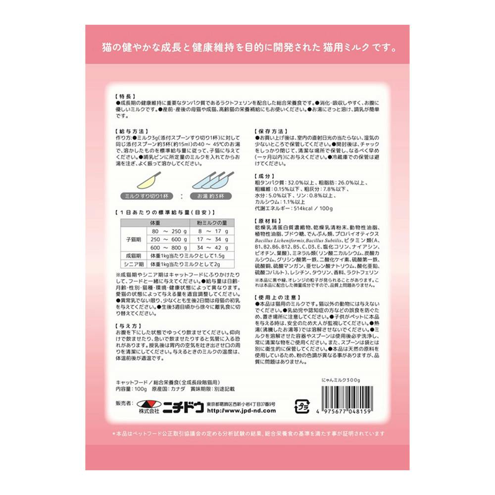 ●成長期の健康維持に必要なタンパク質であるラクトフェリンを配合した総合栄養食です。●消化・吸収しやすく、お腹に優しいミルクです。●産前・産後の母猫や成猫、高齢猫の栄養補給にもお使いください。●お湯にさっと溶け、調乳が簡単です。