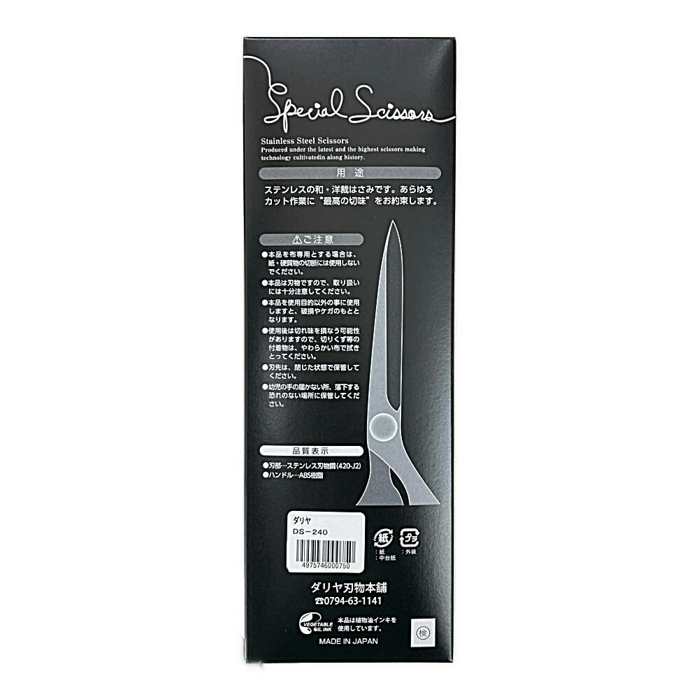 ダリア ステンレス刃物鉱 ブラック ラシャ切 240mm