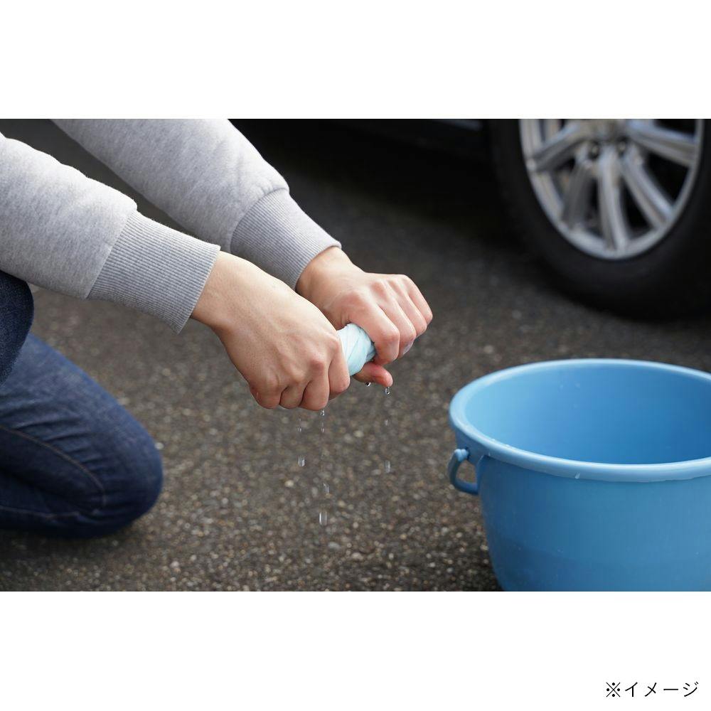 洗車後に箱から引き出してカット。シートを水に濡らして固く絞り、ガラスとボディの水滴をどんどん拭いていきます。
