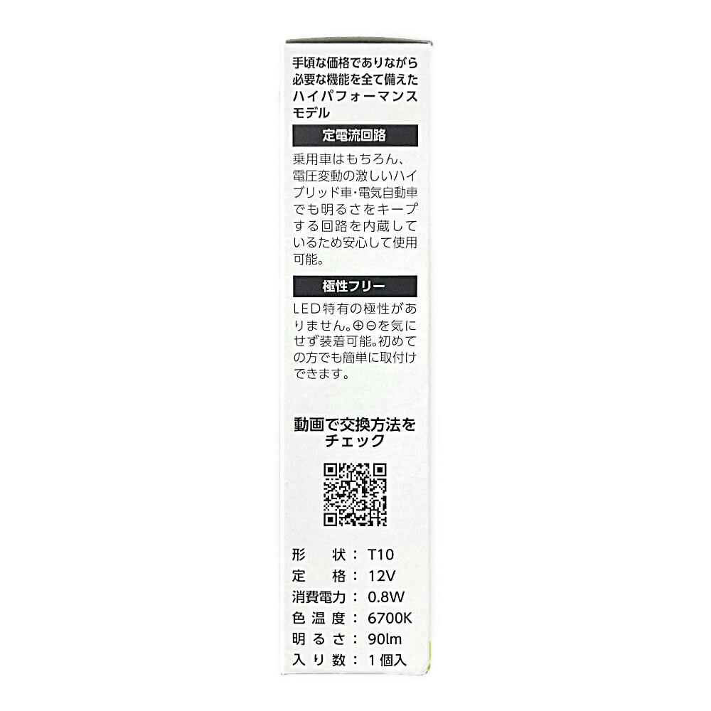 形状:T10、定格:12V、消費電力:0.8W、明るさ:90lm