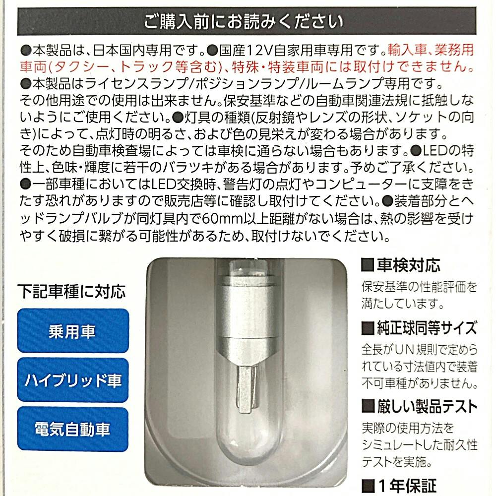 ●色温度/6700K ●安心機能/定電流回路+取付け簡単/極性フリー ●本製品は日本国内専用です ●国産12V自家用車専用です。輸入車、業務用車両(タクシー・トラック含む)、特殊・特装車両には取り付けできません。など