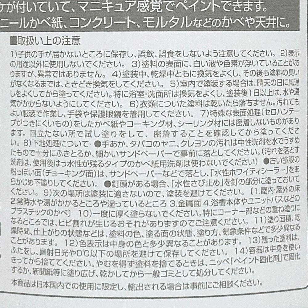 ●子供の手が届かないところに保存し、誤飲、誤食をしないよう注意してください。●表示の用途以外に使用しないでください。●塗料の表面に白い液や色素が浮いていることがありますが、異常ではありません。
