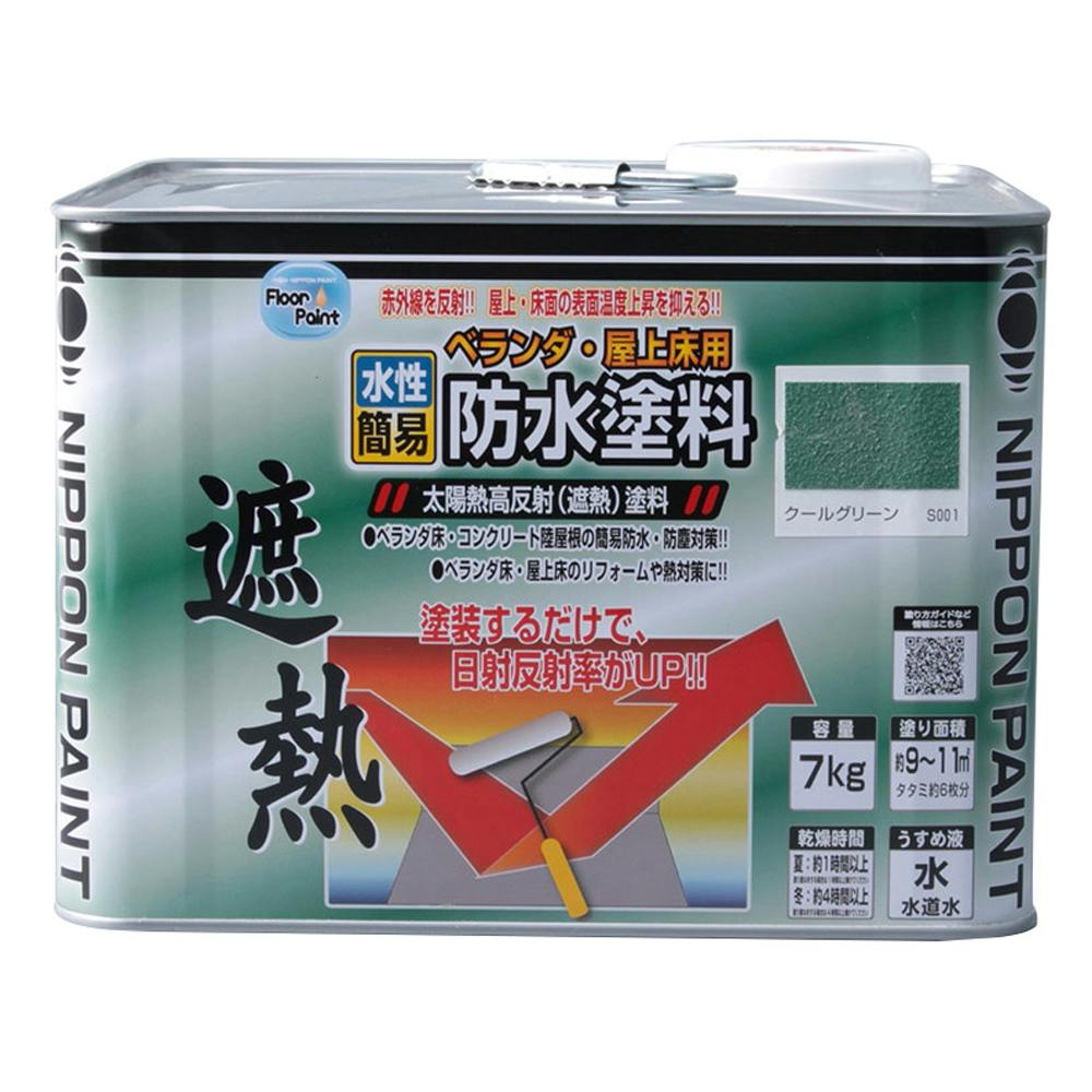 水性ベランダ・屋上床用防水遮熱塗料 クールグリーン 7kg