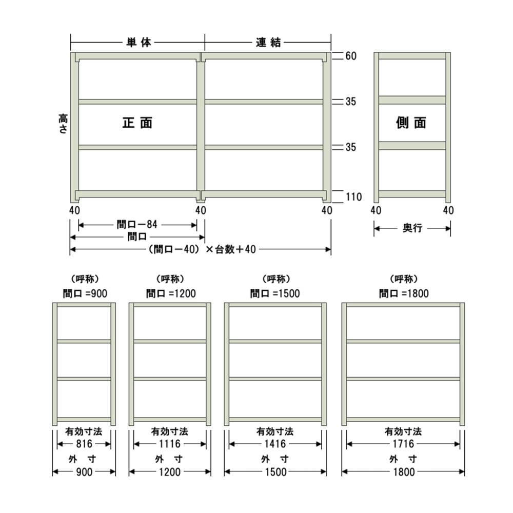 【送料無料】キタジマ 軽中量ラック 200KG 連結 幅1200×奥行き450×高さ2100mm 4段 【別送品】