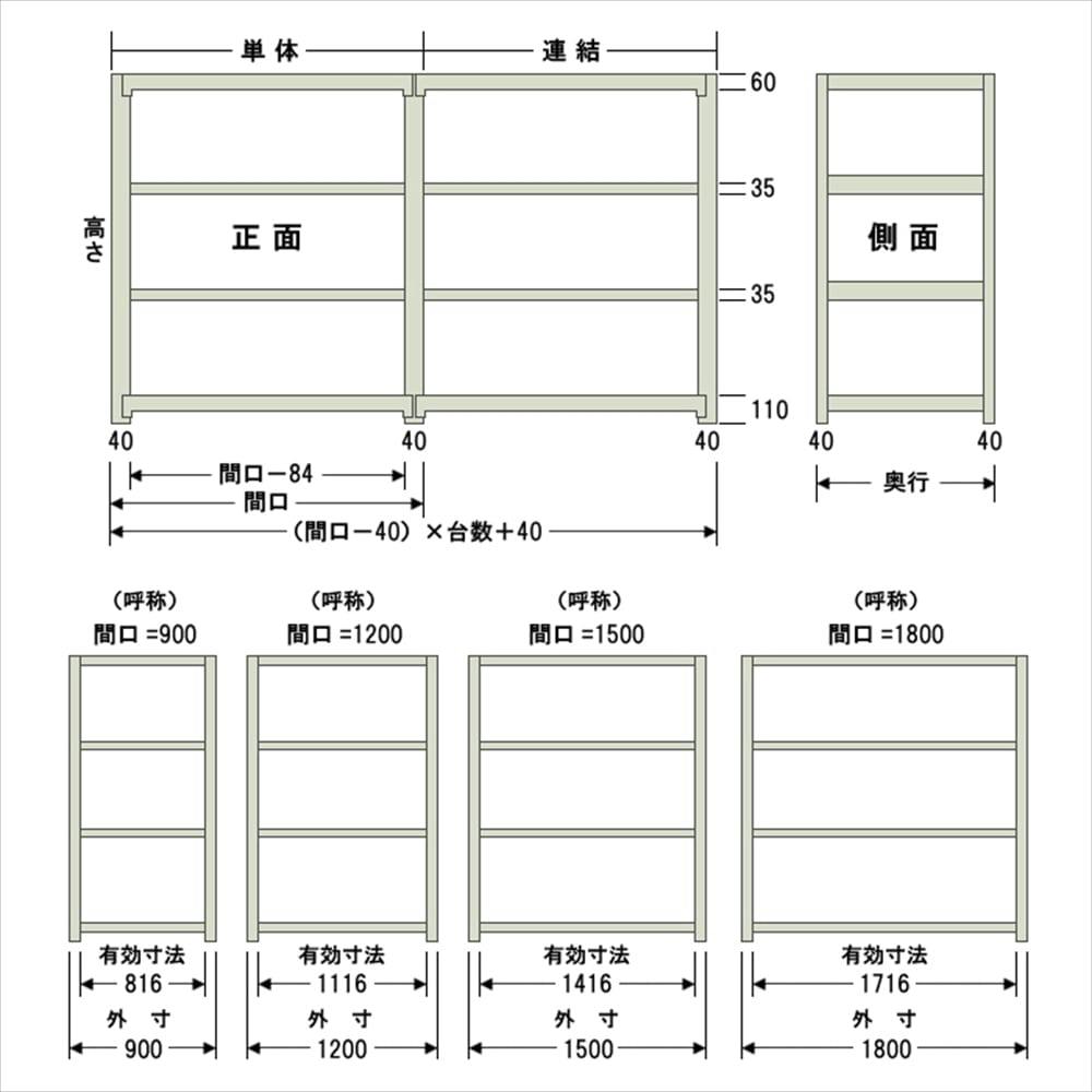 【送料無料】キタジマ 軽中量ラック 200KG 単体 幅1500×奥行き450×高さ1500mm 4段 【別送品】