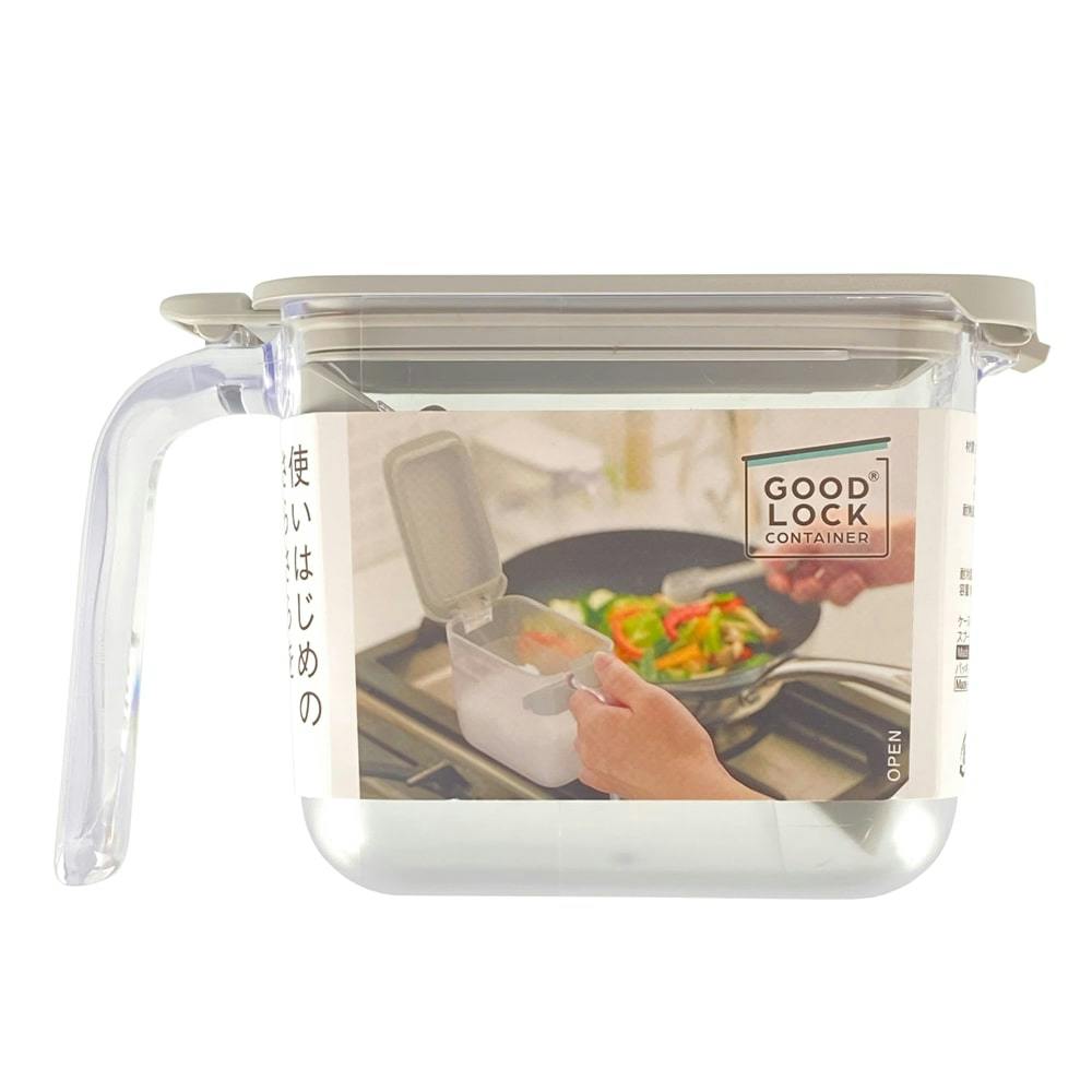 フタが奥に開くので調理中も使いやすく、スプーン小さじ1(5mL)をすり切れる板付き。