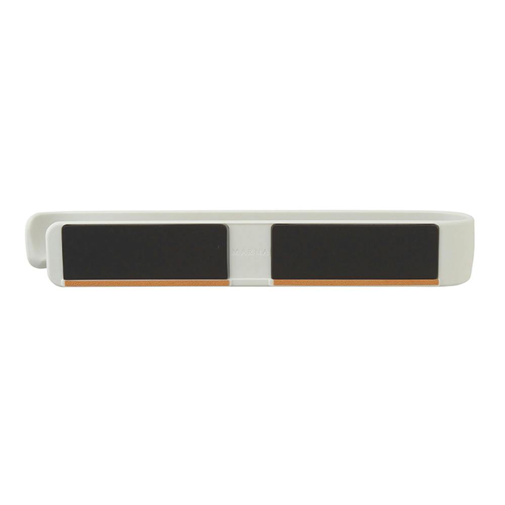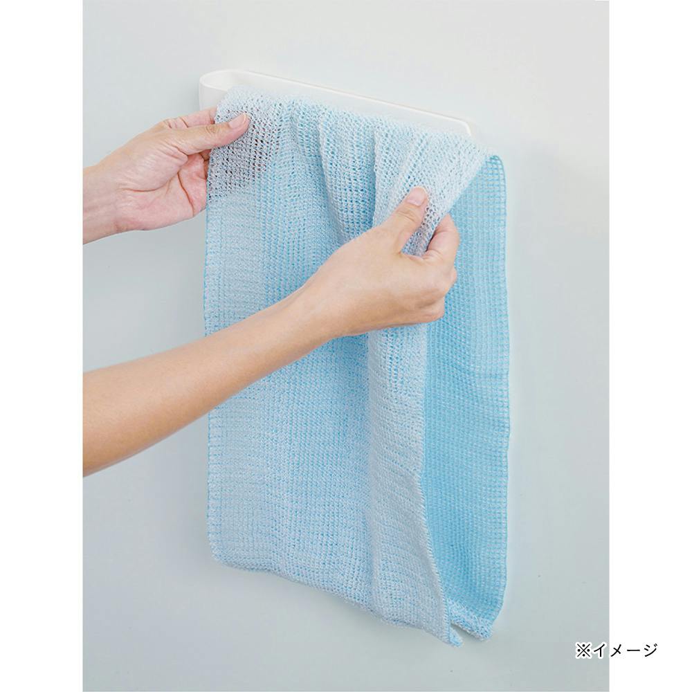 コの字になっているので、タオルを横からサッと掛けられる。錆びないラバーマグネットを採用。