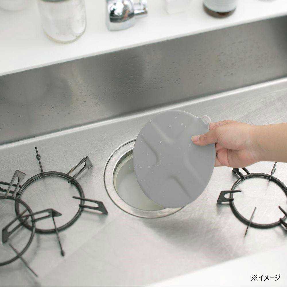 キッチンシンクの排水口に乗せるだけ、簡単につけ置き洗いができる止水キャップ。