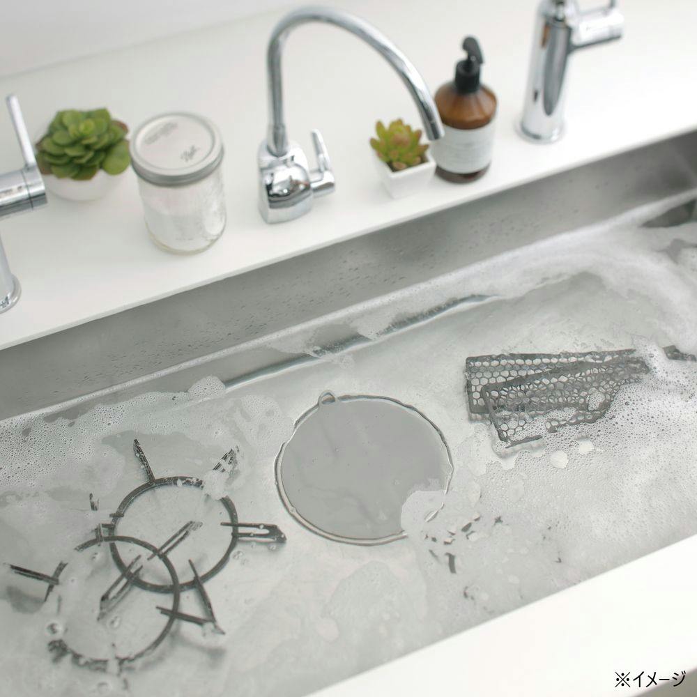 シンクの排水口に蓋替わりに置いて、水をはり、つけ置き洗いができます。